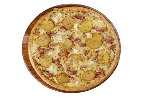 Crème fraîche, mozzarella, lardon, pommes de terre, Reblochon, oignons